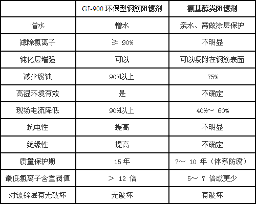 GJ-900環(huán)保型鋼筋阻銹劑與氨基醇類(lèi)阻銹劑比較: